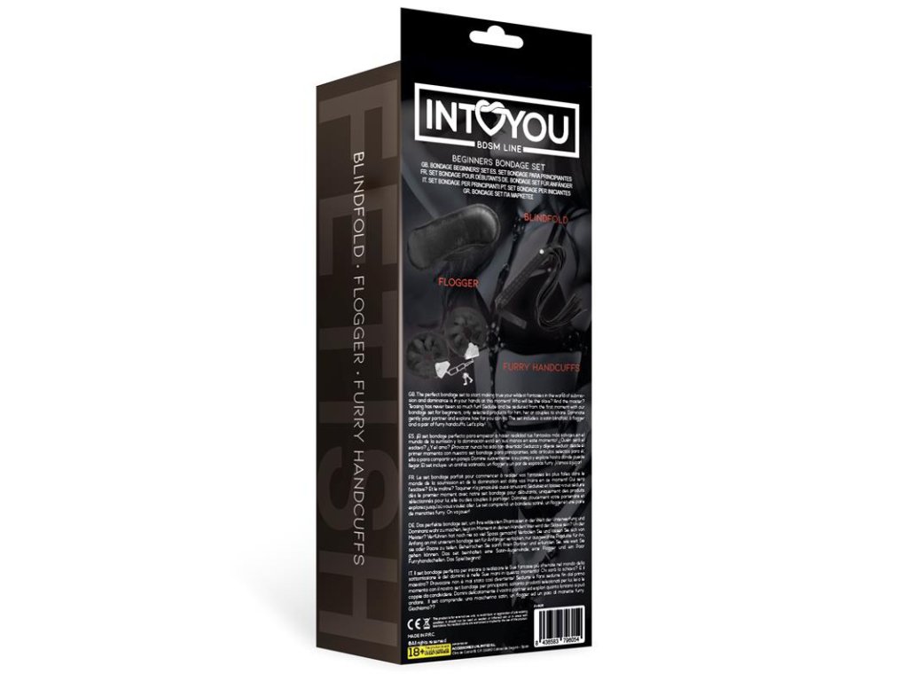 Fetish Bondage Set od Intoyou – objev svou dominantní i submisivní stránku. Maska, pouta a bičík pro nezapomenutelné noci plné vášně.