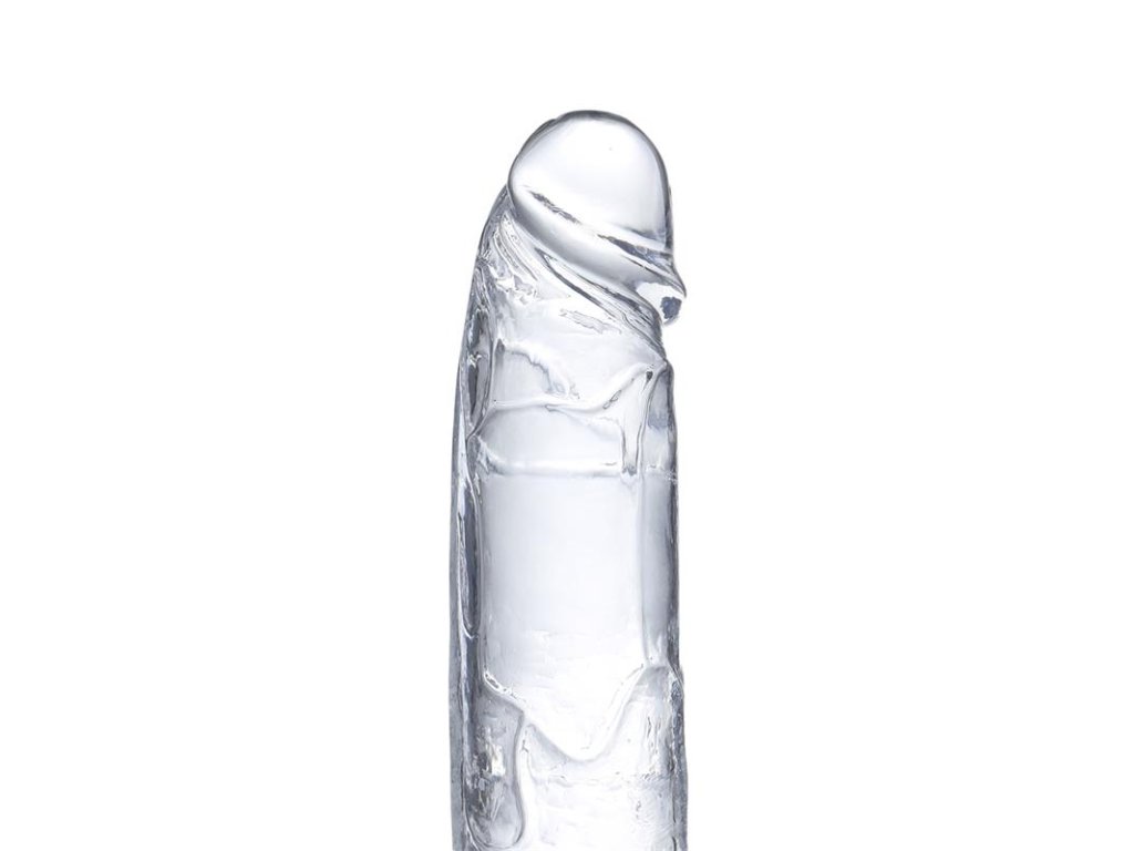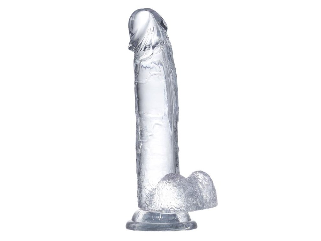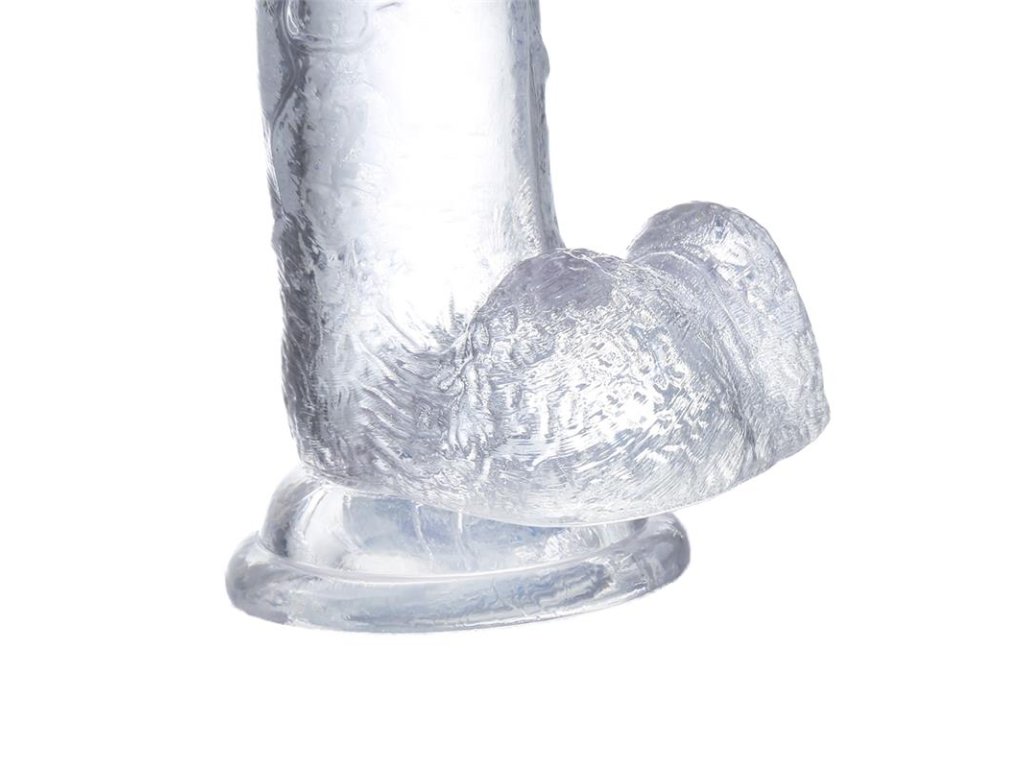 Realistické průhledné dildo Glazed s varlaty, měkkým tělem a silnou přísavkou. Flexibilní, detailní a vyrobené z bezpečných krystalických materiálů.