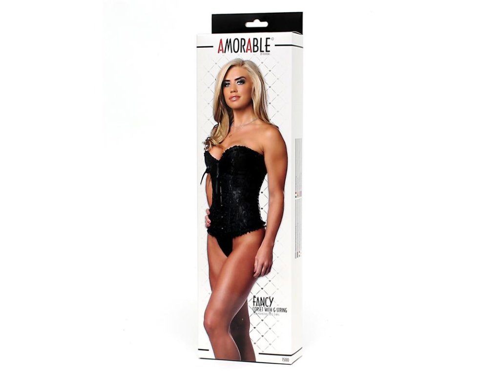 Amorable by Rimba – Laced Corset with G-String černý – barokní vášeň a elegance v jednom