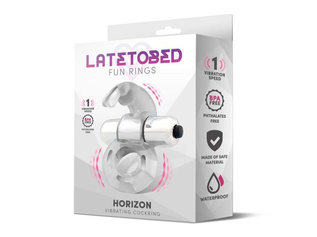 Latetobed Horizon – vibrační erekční kroužek s králíčkem pro intenzivní potěšení obou partnerů. Elastický, měkký, voděodolný a bez ftalátů.