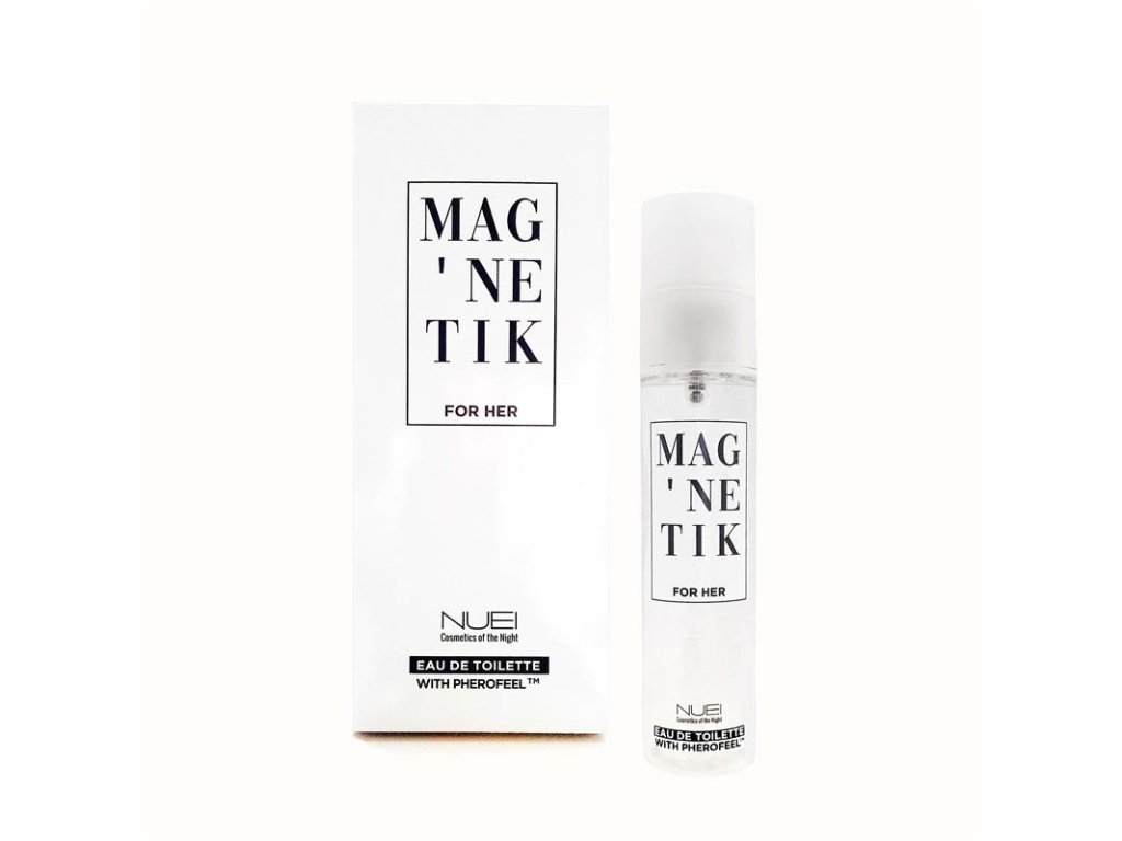 Objevte sílu přirozené přitažlivosti s MAG’NETIK for Her by NUEI, exkluzivním parfémem z nové řady inspirované feromony. Díky inovativní aktivní složce PHEROFEEL™, vyvinuté společností NUEI, parfém přirozeně zvyšuje ženskou atraktivitu, posiluje sebevědomí a probouzí touhu.