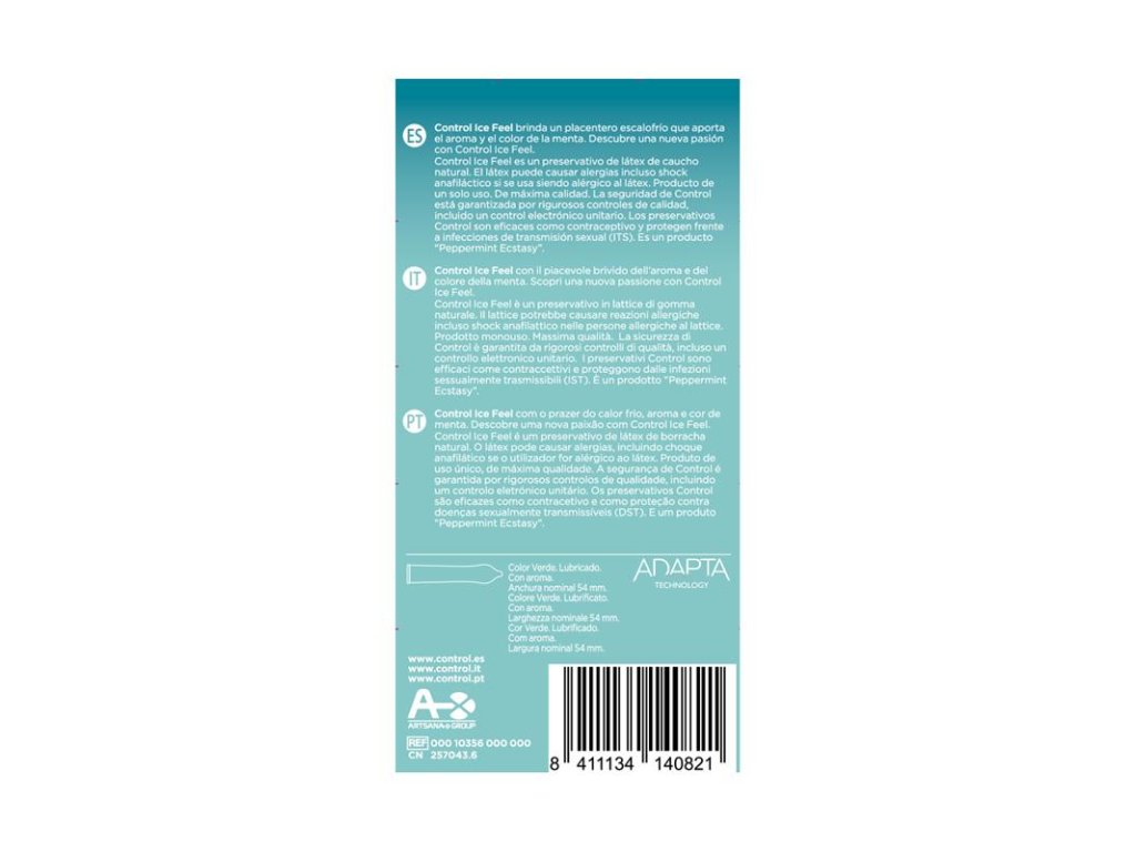 Toužíte po novém rozměru intimních chvil? Control Ice Feel kondomy přinášejí příjemný chladivý pocit díky speciální mentolové lubrikaci. Ten osvěžující mentolový efekt umocňuje smyslový zážitek, dodává vzrušení a pomáhá prolomit horkost i v těch nejintenzivnějších momentech.