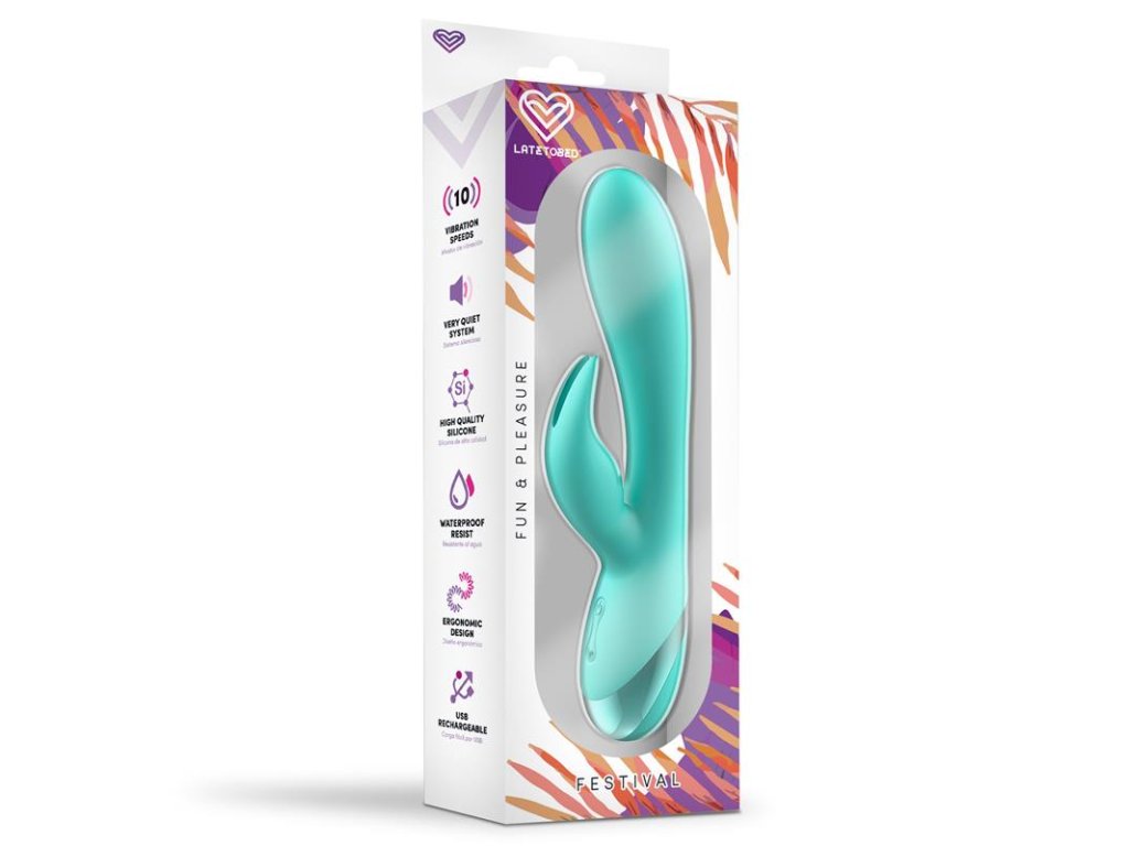 Festival – vibrátor s 10 vibračními funkcemi, klitorální stimulací a ergonomickým designem. Tichý, voděodolný, dobíjecí přes USB.